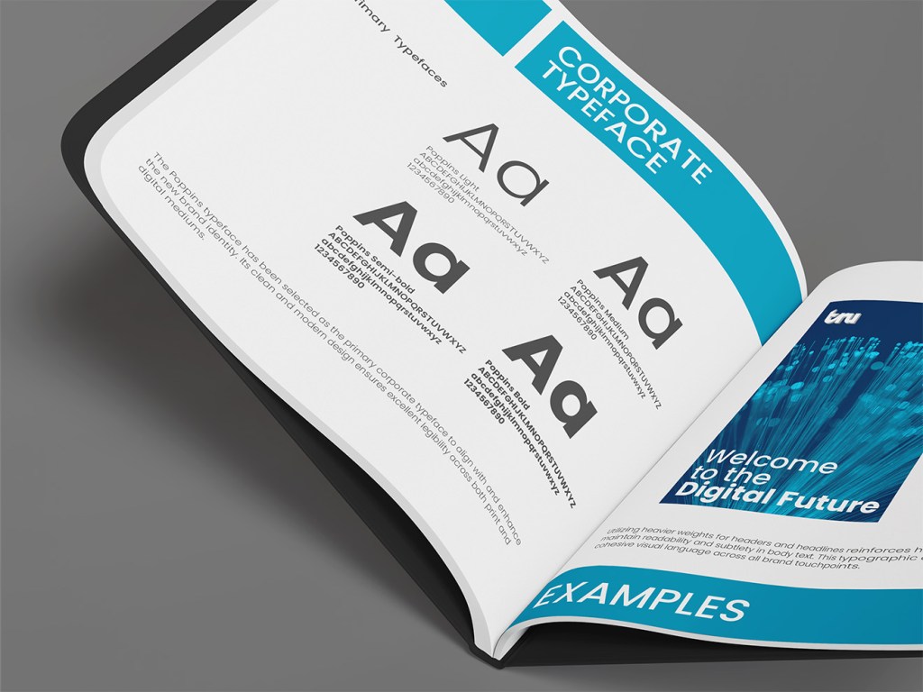 The Poppins typeface was selected to be the primary corporate typeface to complement the new branding. It offers a clean, modern look and easy legibility across print and digital touchpoints. Heavier weights are used for headers and headlines, while lighter weights are reserved for body copy.