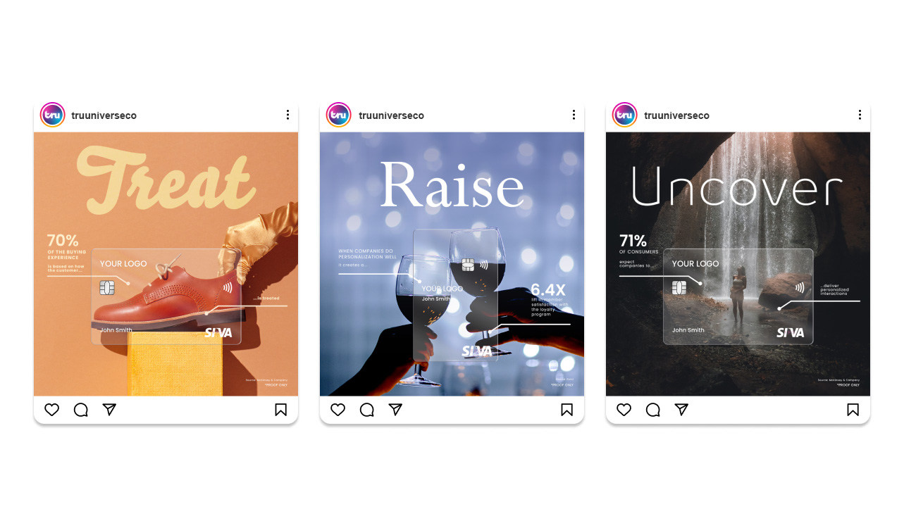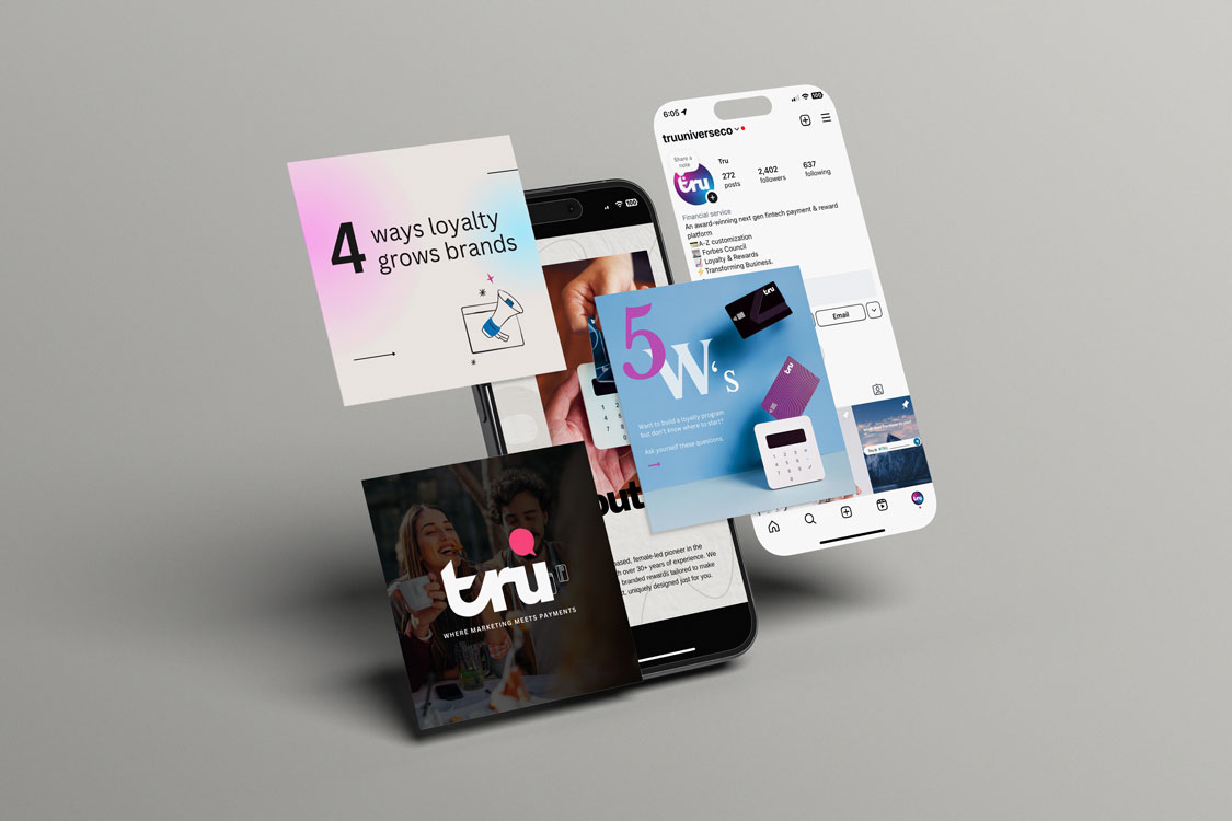 We began by redefining Tru’s brand positioning, shifting the narrative to emphasize flexibility, customization, and client empowerment. We audited the old branding to categorize which items still resonated with clients and the market, removing those that didn’t. The team collaborated to study industry trends and research competitors’ strategies. We used the findings and keywords to create mood boards, which were presented to stakeholders. The updated messaging, “Where Marketing Meets Payments,” served as a rallying call for businesses seeking real-time rewards and advanced digital payment solutions.